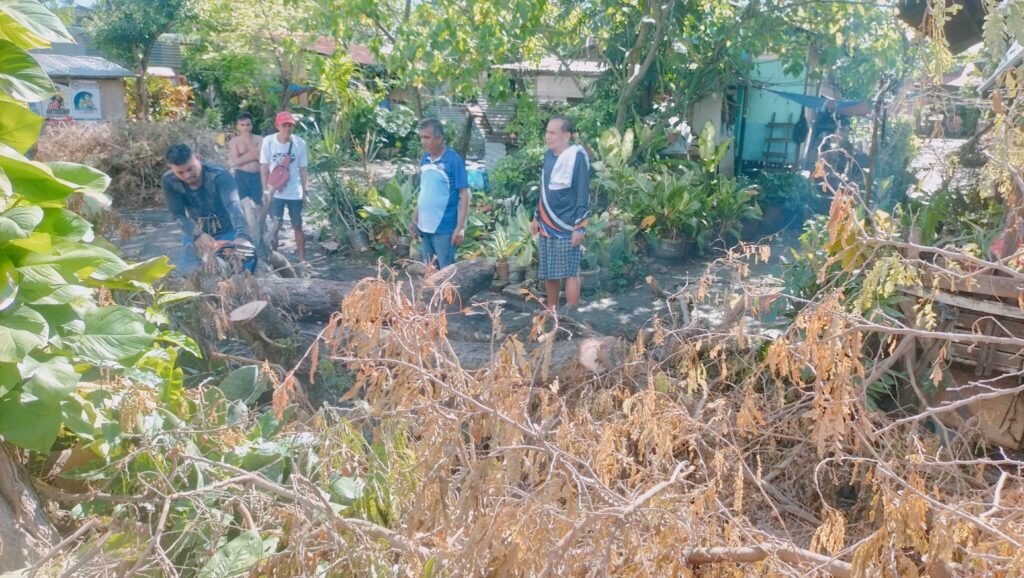 Karon, ania sila sa Purok Tambis, nagpadayon sa pagpamutol, paghipos, ug paglimpyo aron mahawanan ang dalan ug mabalik ang normal nga palibot sa mga residente.