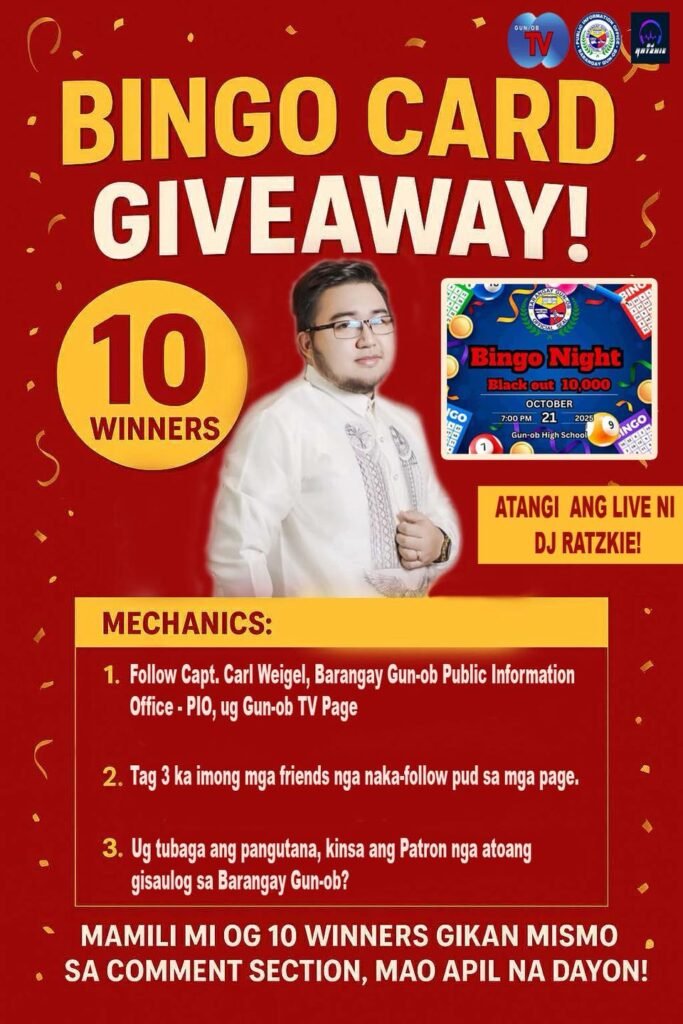 10 WINNERS ang makadaug og Barangay Gun-ob Bingo Cards!