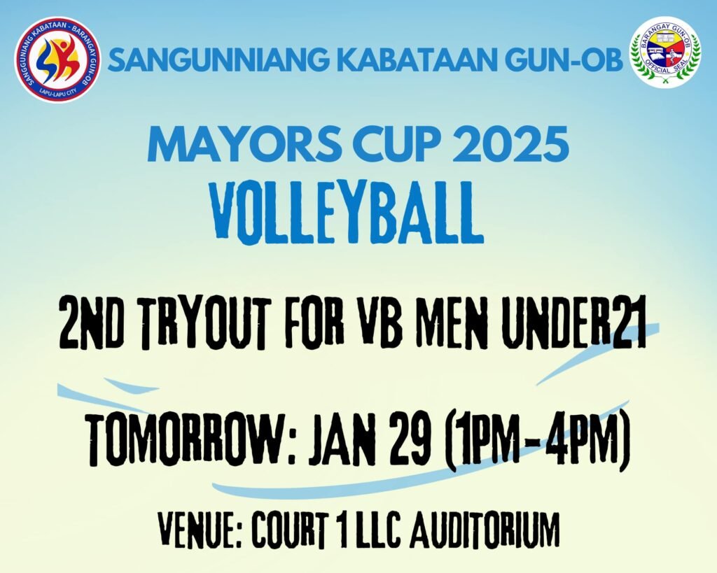 π βΌοΈ 2ND TRYOUT FOR MENβS VOLLEYBALL UNDER 21 βΌοΈBy Raishell Damole / January 16, 2026 All aspiring players, this is your chanceβsee you on the court! π