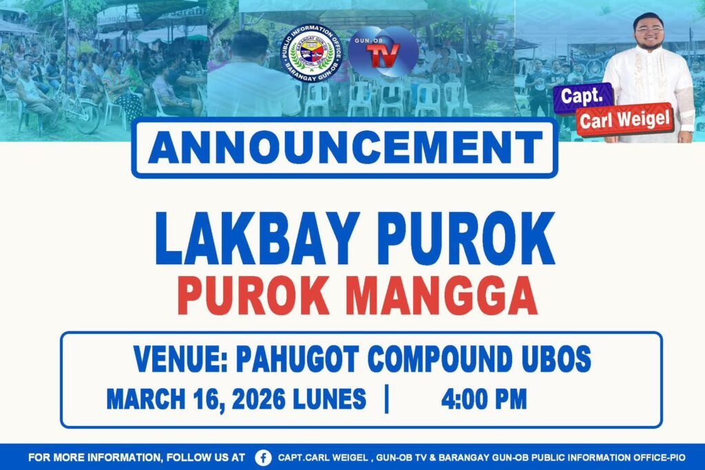 Magkita-kita ta! Padayon ta sa pagtinabangay alang sa mas lig-on ug mas maayong Barangay Gun-ob.
