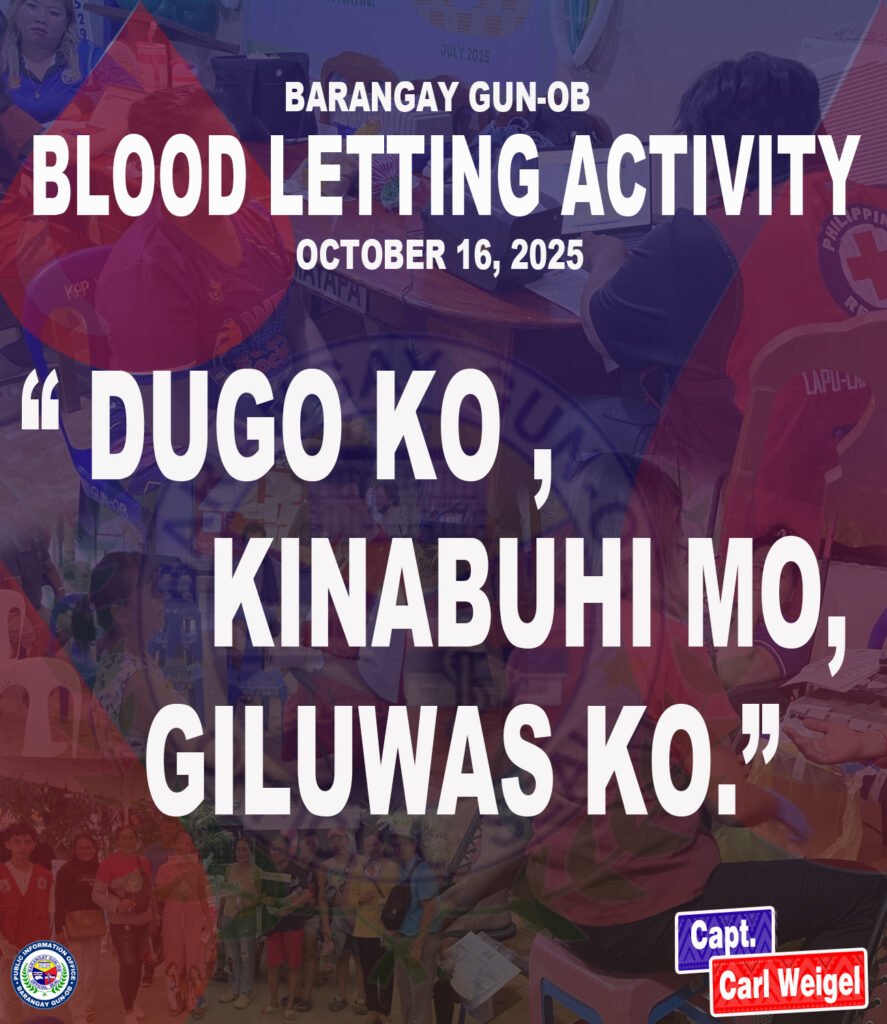 Ang City Health Office โ Lapu-Lapu City, uban sa Barangay Gun-ob ubos sa pagdumala ni Kapitan Carl Steven Weigel, magpahigayon og Mobile Blood Drive: