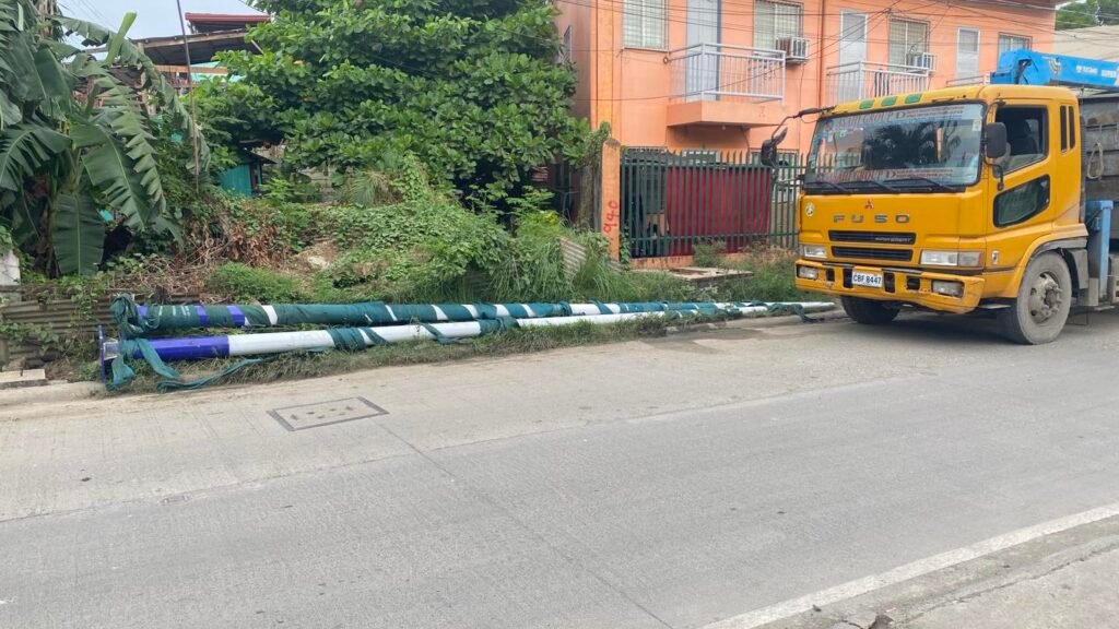 Adunay mga trucks nga nagdala ug mga poste alang sa umaabot nga pag-instalar sa solar lights sa atong dalan.