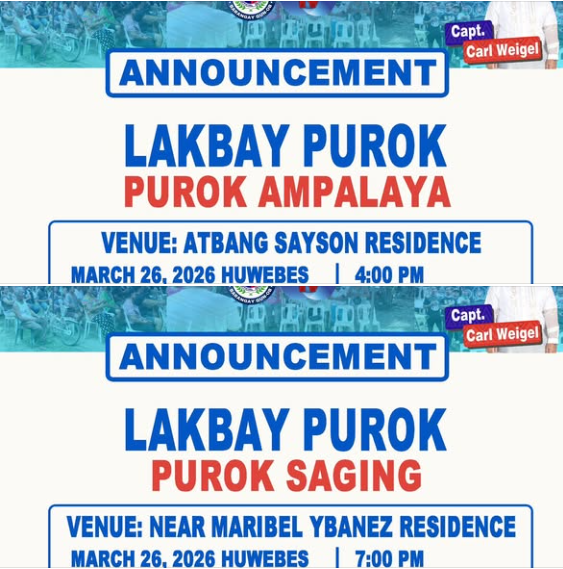 Giimbitar ang tanang lumulupyo sa Purok Saging ug Purok Ampalaya sa umaabot nga Lakbay Purok 2026. Kini nga kalihokan gitumong