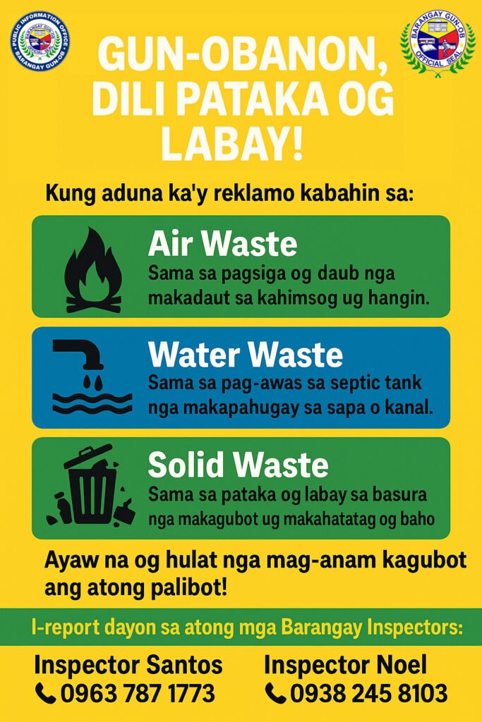 📣 PAHIBALO SA TANAN 📣 Nakadawat kita og mga reklamo gikan sa mga Gun-obanon kabahin…