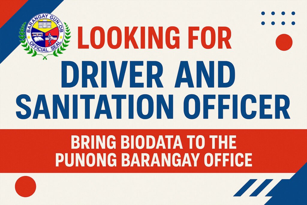 Barangay Gun-ob is looking for a Driver and a Sanitation Officer! ๐ Interested applicants are…